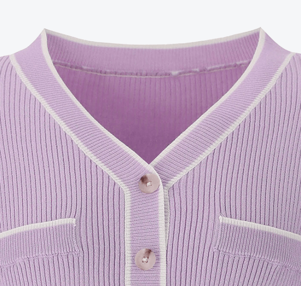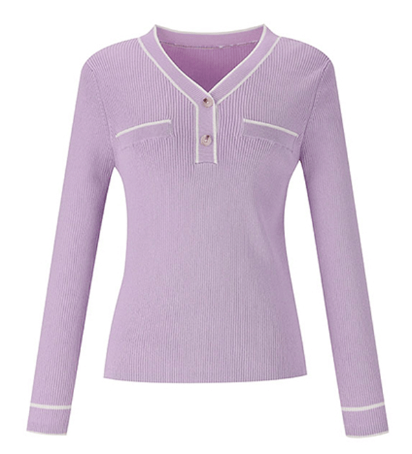 [숲 퍼플 브이넥 라인 배색 니트] 옥미래 패션