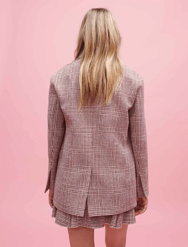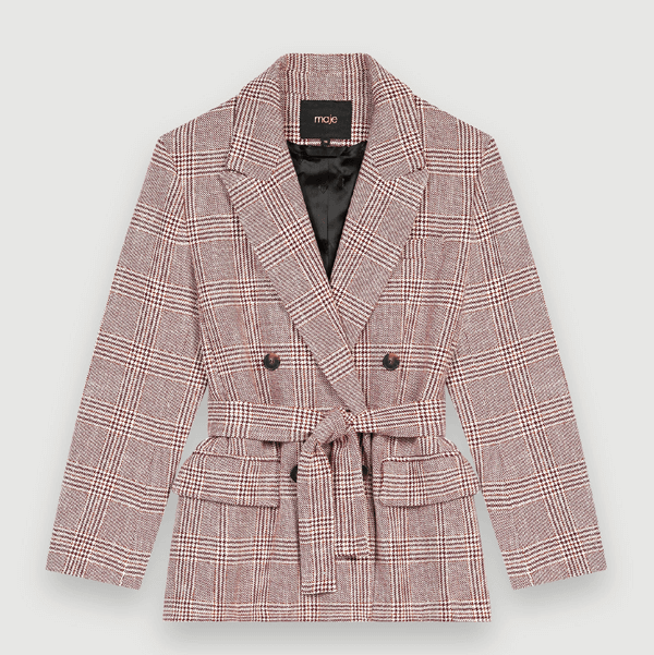 [마쥬 타이 웨이스트 체크 자켓] 연보라 패션