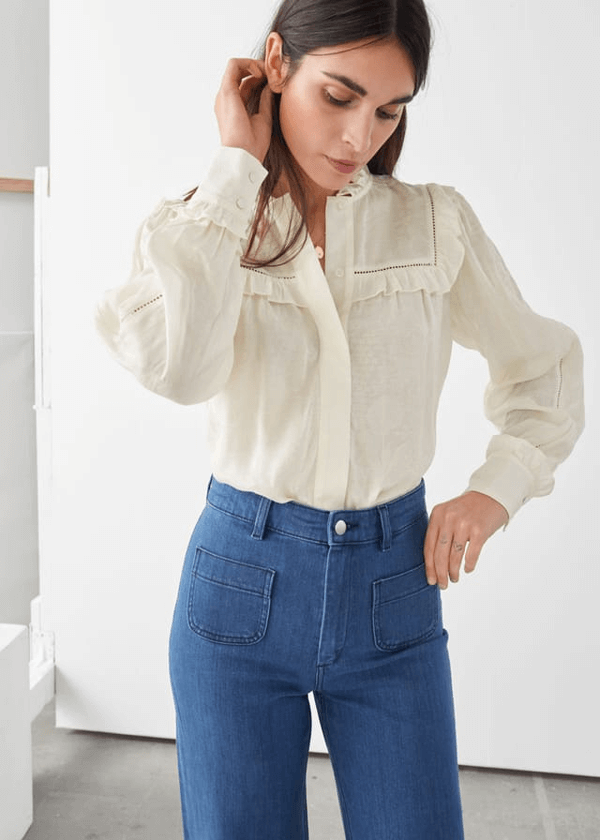 앤아더스토리즈 자카드 프릴 블라우스 [공유명 패션]