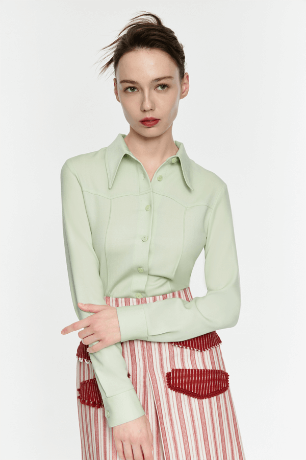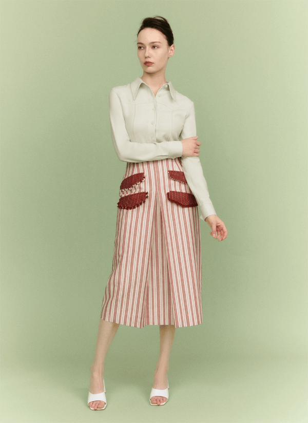 페이우 민트 셔츠&스트라이프 스커트 [장세진 패션]