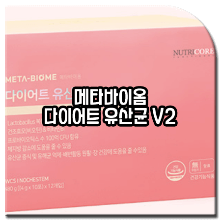 메타바이옴V2(META-BIOME V2)는 많은 사람들에게 선택을 받고 있는 건강기능식품 브랜드 뉴트리코어(NUTRICORE)에서 출시한 건강기능식품으로, 비만과 밀접하게 관련이 있는 장내 유해 세균을 관리할 수 있도록 설계되어, 국내 최초로 식약처에서 체지방 감소 기능성을 인정받은 식물 유래 다이어트 유산균 기능성원료인 락토바실러스 복합물 HY7601+KY1032를 주원료로 함유한 다이어트 유산균 식품입니다.