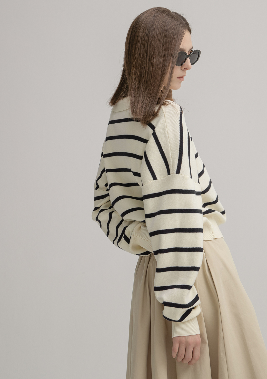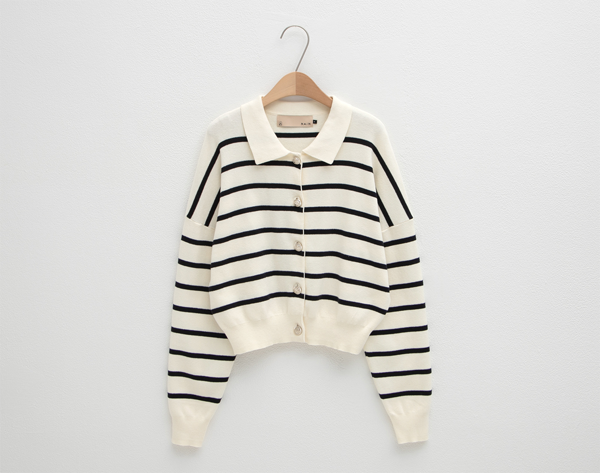 오버핏 스트라이프 카라 니트 가디건