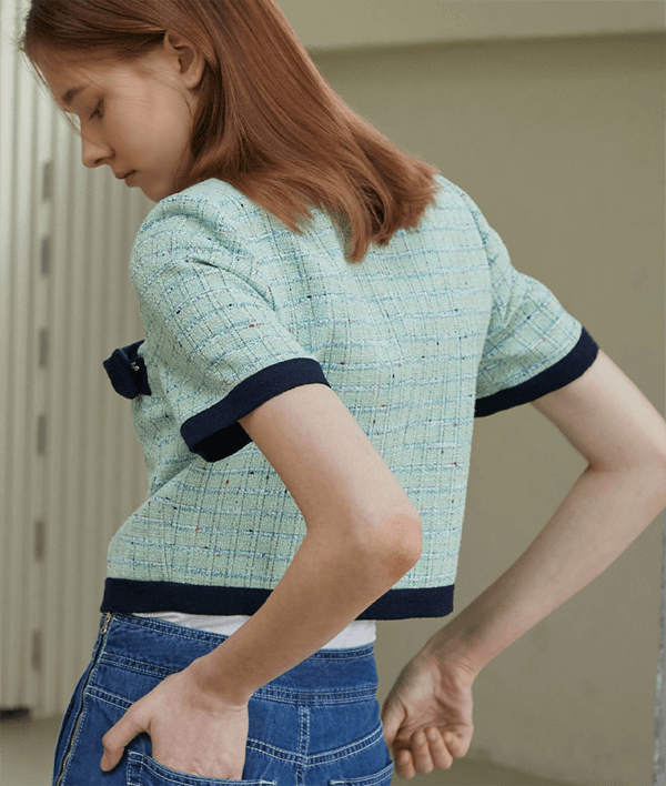 비밀의 여자 75회 최윤영 반팔자켓 - KBS2 일일연속극 '비밀의 여자' 75화 중에서, 오세린역으로 출연하고 있는 배우 최윤영씨가 입고 나온 옷들 중에서, 네이비 컬러의 배색 라인과 리본 장식이 들어간 포켓 디테일이 돋보이는 민트 컬러의 반팔 자켓에 대한 정보.