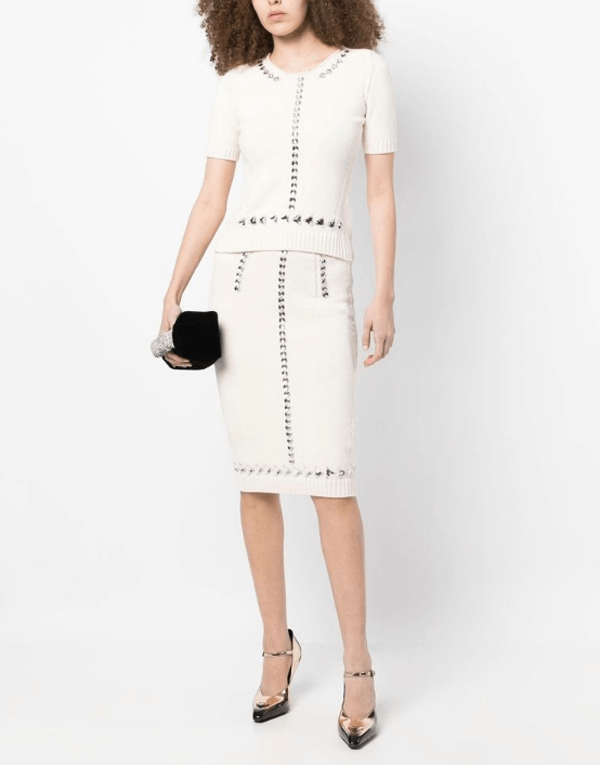 넘버21 크리스탈 장식 반팔니트&펜슬스커트 셋업 [김나영 옷]
