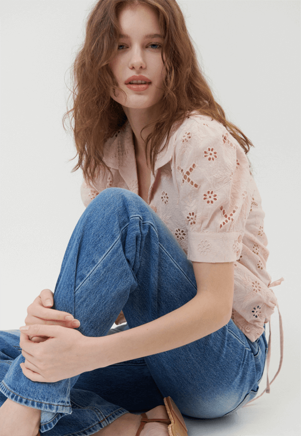 오앨 핑크 펀칭 스트링 블라우스 [공유명 패션]