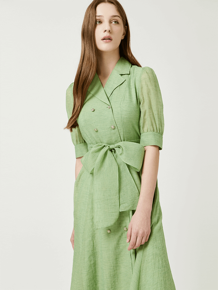 비밀의 여자 92회 최윤영 원피스 - KBS2 일일연속극 '비밀의 여자' 92화 중에서, 정겨울역으로 출연하고 있는 배우 최윤영님이 입고 나왔었던 옷으로, 허리 부분의 빅 리본 연출 스트랩이 포인트로 들어가있는 그린 컬러의 플레어 A라인 원피스에 대한 정보.