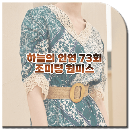 하늘의 인연 73회 조미령 원피스 - MBC 일일연속극 '하늘의 인연' 73화 중에서, 채영은역으로 출연하고 있는 배우 조미령님이 입고 나왔었던 옷으로, 넥라인과 소매 밑단의 레이스 배색과 전체적으로 들어간 페이즐리 패턴, 허리의 벨트가 포인트인 브이넥 원피스에 대해서 알아왔습니다.