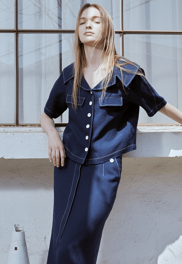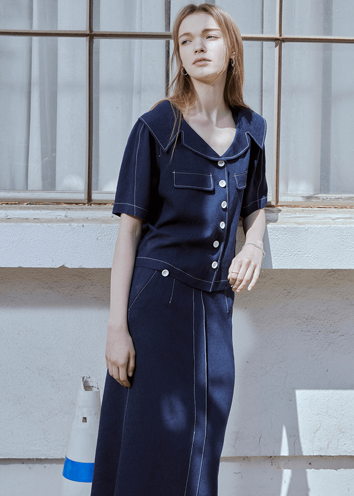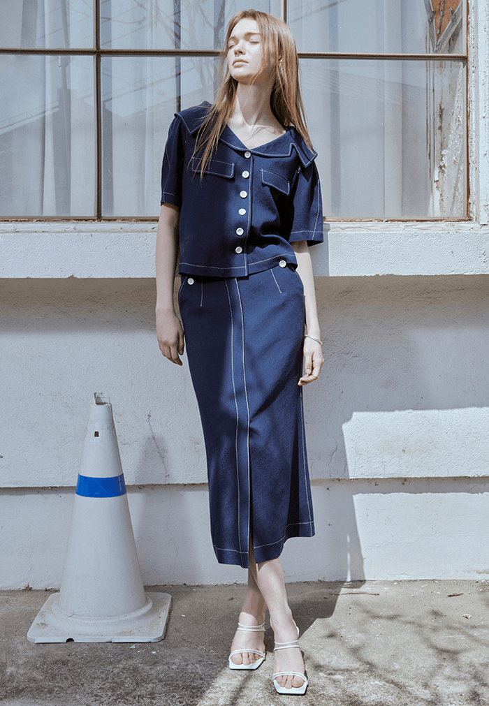 헌치 스티치 블라우스&스커트 셋업 [서희재/신주경 패션]