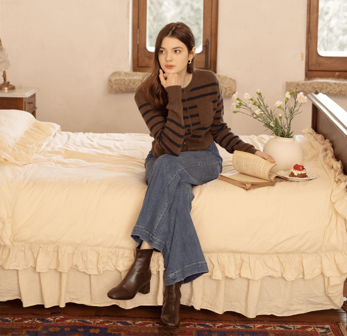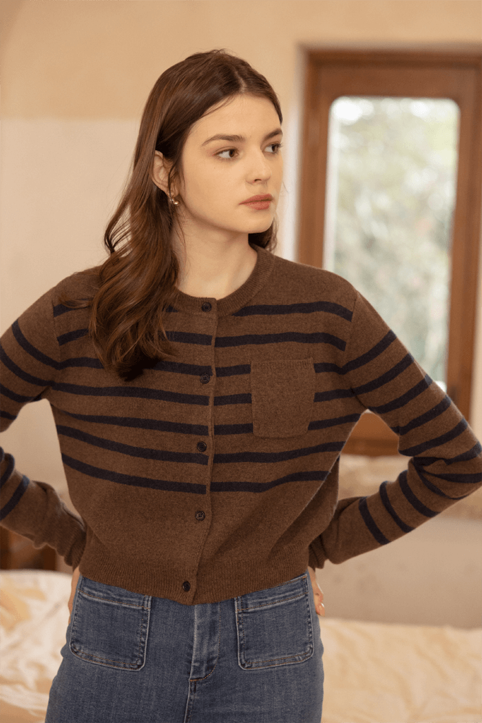 르니나 브라운 스트라이프 가디건 [봉예분 패션]