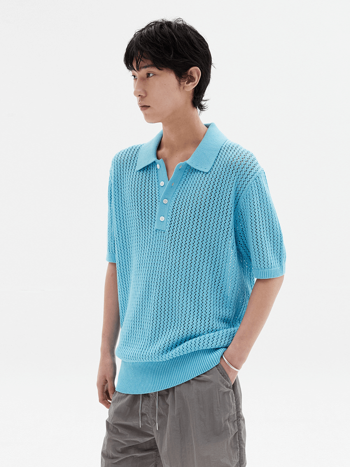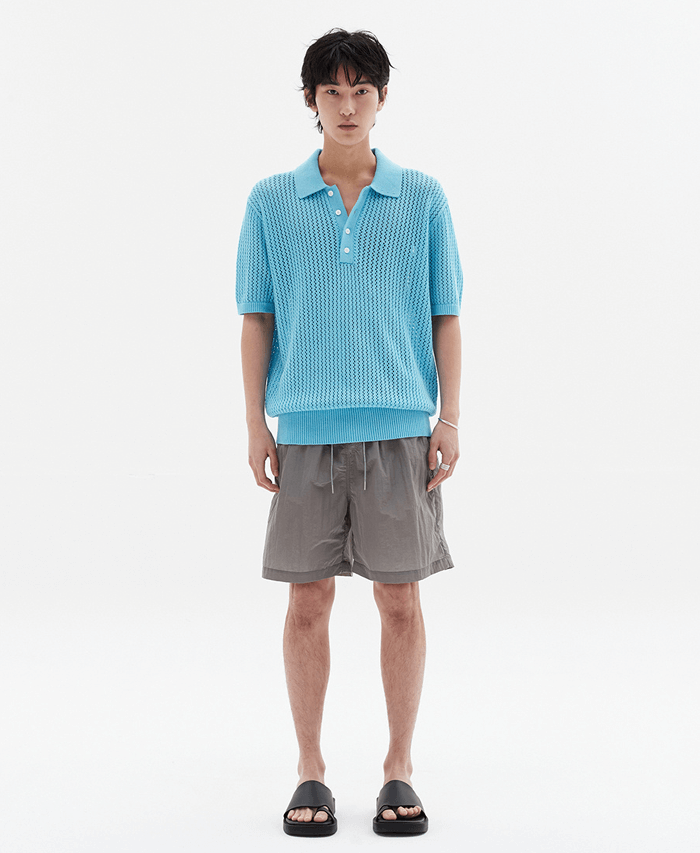 르마드 라이트블루 반오픈 스카시 반팔 니트 [공태경 패션]