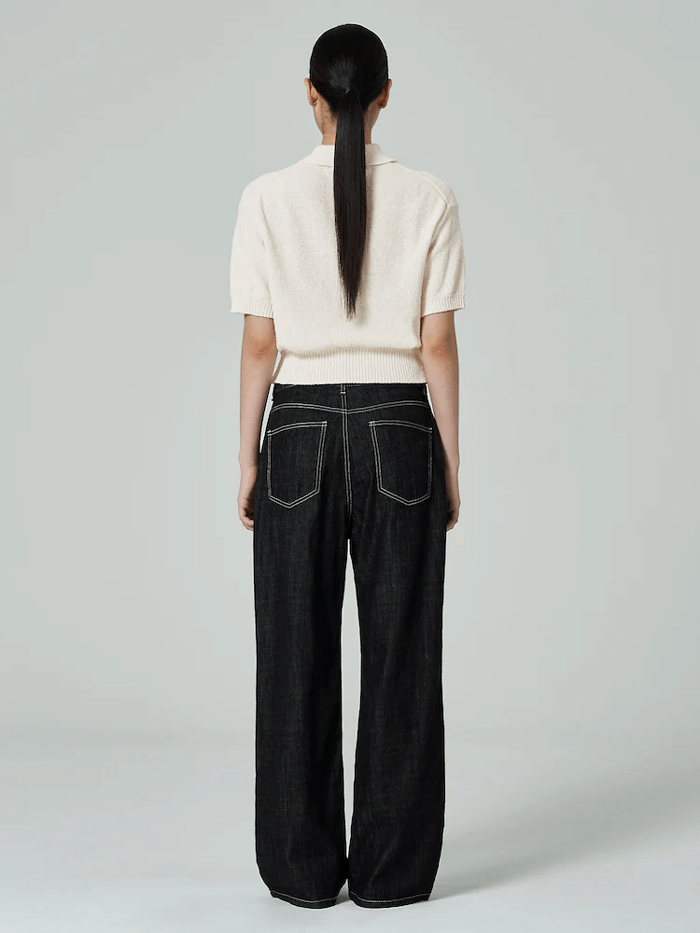 칼라넥 반소매 풀오버 아이보리