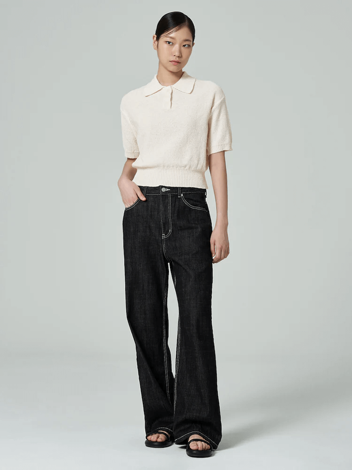 에잇세컨즈 아이보리 반팔 카라 니트 [서희재&신주경 패션]