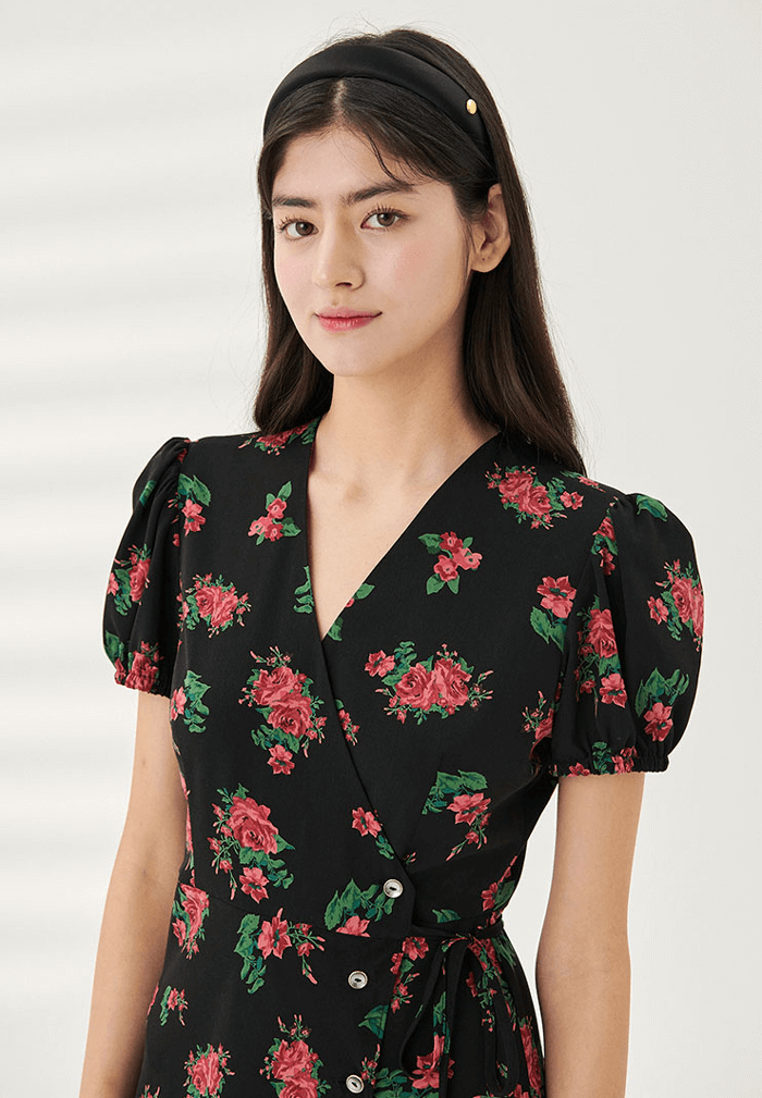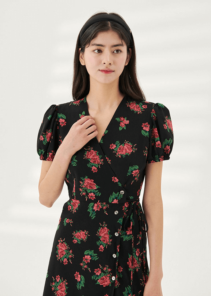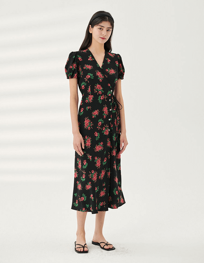 랭앤루 장미 패턴 랩 원피스 [재클린 패션]