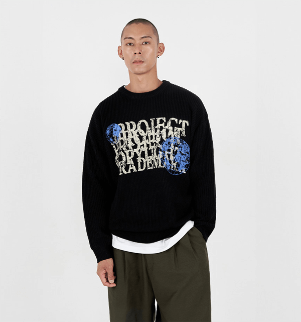 2024년 12월 12일 목요일 유튜브 ootb STUDIO에 공개된 제주대 감귤포장학과의 진실 [제주대 관광경영학과] | 전과자 ep.76 중에서, 비투비 이창섭님이 입고 나왔었던 옷으로, 전면에 들어간 캐쥬얼한 무드의 그래픽이 포인트인 오버사이즈 핏 니트 스웨터에 대한 정보입니다.
