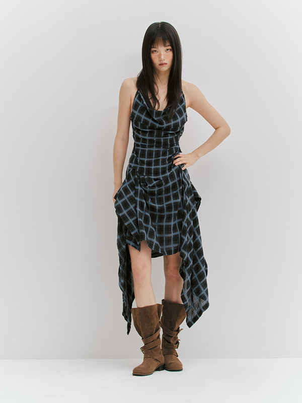 2025년 8월 21일 목요일 방송. SBS Plus · ENA 예능 프로그램 나솔사계(나는 솔로, 그 후 사랑은 계속된다) 127화 중에서, 나인뮤지스 출신 방송인 경리님이 투피스 셋업으로 입고 나왔었던 옷으로, 체크 패턴이 매력적인 홀터넥 탑과 드레이프 롱 스커트에 대한 정보입니다.