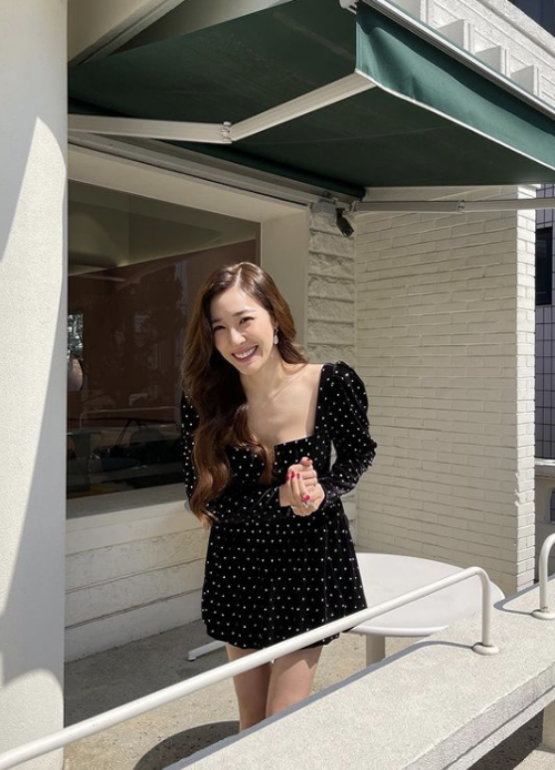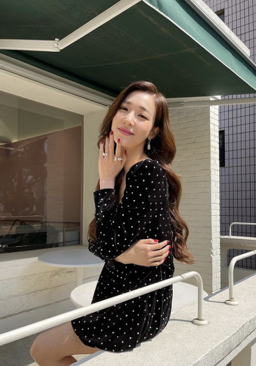소녀시대 티파니 인스타그램 속 원피스 - 셀프포트레이트 블랙 벨벳 도트 드레스