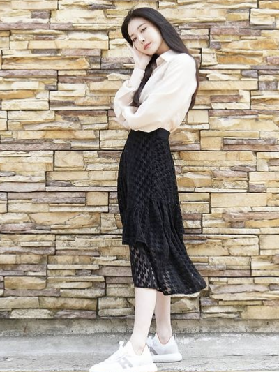 걸스데이 유라 인스타그램 속 스커트 - 쥬시쥬디 메탈 프릴 스커트