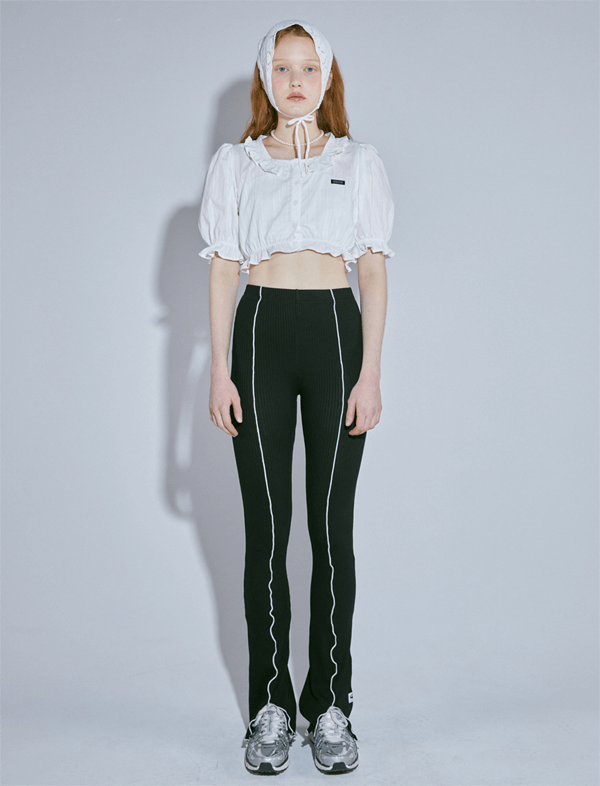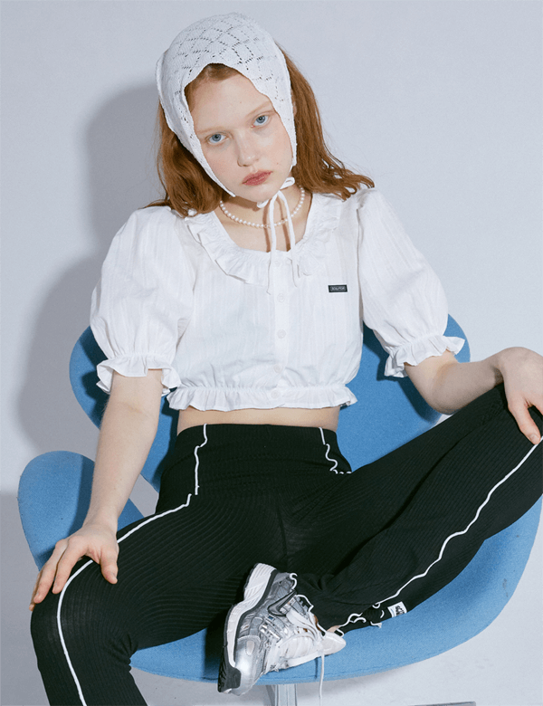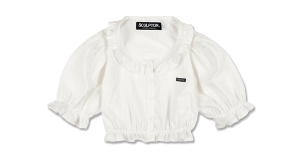 블랙핑크 지수 블라우스 - 스컬프터 러플 아일렛 크롭 블라우스 패션